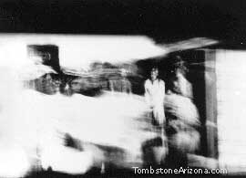 Tombstone photographer James Kidd captured this stunning image while taking photos of an empty stage in the back section of a Tombstone bar named Legends of the West. The owner wanted him to take pictures of the empty stage section for remodeling purposes. The image he developed almost knock him off his stool... that's of course if he has a stool!