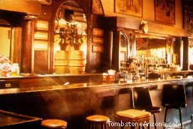 The basement was deep enough below the surface of the ground to afford entrance into one of the catacombing mine shafts which ran underground beneath the hotel as well as most of Tombstone. "The Swamper" spent many painstaking hours over a period of years tunneling an entrance into the shaft. When the digging was completed, he could gain access to a thick vein of silver where he extracted ounce by ounce of the glorious silver nuggets. This mine entrance is still a prominent feature of the bar's basement.